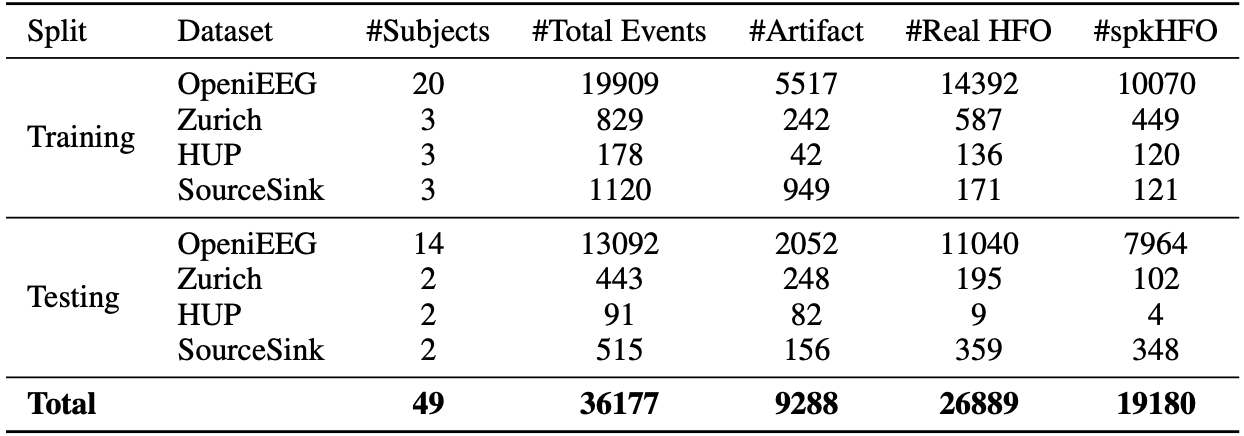 Over 36,000 high-frequency oscillation (HFO) events were annotated, combining new and previously published events. Candidate events were detected with three established algorithms (STE, MNI, Hilbert) and reviewed by four board-certified epileptologists. Each event was labeled as artifact, non-spkHFO, or spkHFO.